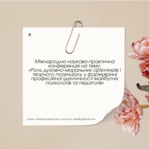 📚 Міжнародна науково-практична конференція на тему: «Роль духовно-моральних орієнтирів і творчого потенціалу у формуванні професійної ідентичності майбутніх психологів та педагогів» […]