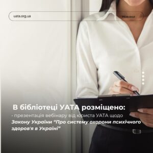 В бібліотеці УАТА розміщено новий матеріал. Доступна презентація вебінару юриста УАТА щодо Закону України «Про систему охорони психічного здоров’я […]