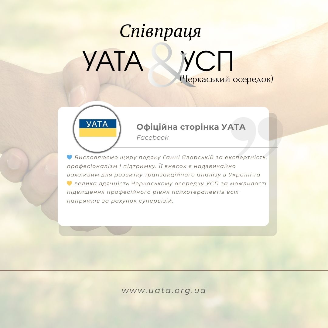💙 Висловлюємо щиру подяку Ганні Яворській за експертність, професіоналізм і підтримку. Її внесок є надзвичайно важливим для розвитку транзакційного аналізу в Україні та