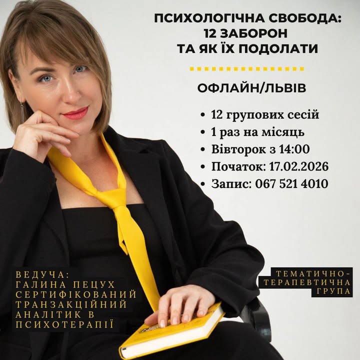 Ми досліджуватимемо 12 ключових психологічних заборон, що впливають на вибір у житті, стосунки, емоції, самооцінку та поведінку. Будемо працювати з дозволами, які повертають свободу діяти, відчувати, обирати й бути собою.