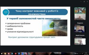 Учасники вебінару не лише поглибили своє розуміння контрактного методу, а й долучилися до змістовної професійної розмови про особливості допомоги клієнтам, які мають залежності, у сучасній психотерапевтичній практиці.