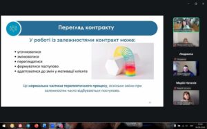 Учасники вебінару не лише поглибили своє розуміння контрактного методу, а й долучилися до змістовної професійної розмови про особливості допомоги клієнтам, які мають залежності, у сучасній психотерапевтичній практиці.