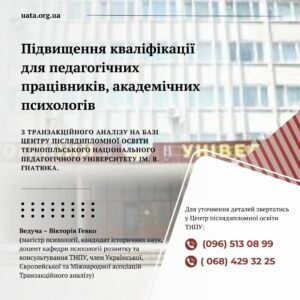 ✅ Відбувся освітній захід з Транзакційного аналізу на базі Центру післядипломної освіти Тернопільського національного педагогічного університету ім. В. Гнатюка. 💫 […]
