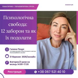 Запрошую до тематично-терапевтичної групи по роботі з “12 заборонами за Гулдінгами” Ми досліджуватимемо 12 ключових психологічних заборон, що впливають на […]